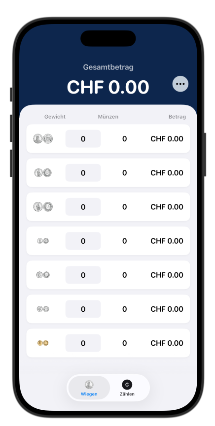 WeighCoins macht aus deiner normalen Küchenwaage eine praktische Münzzählhilfe. Statt jede Münze einzeln zu zählen, wiegst du sie einfach – und die App berechnet daraus den Betrag. Ideal für Trinkgeld, Sparschwein, Vereinskasse, Ladenkasse oder einfach, wenn du wissen willst, wie viel Kleingeld sich schon wieder angesammelt hat.